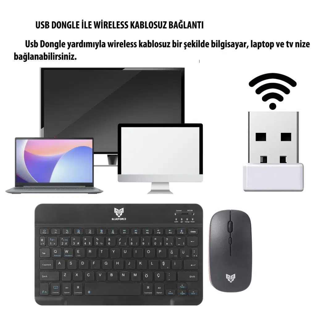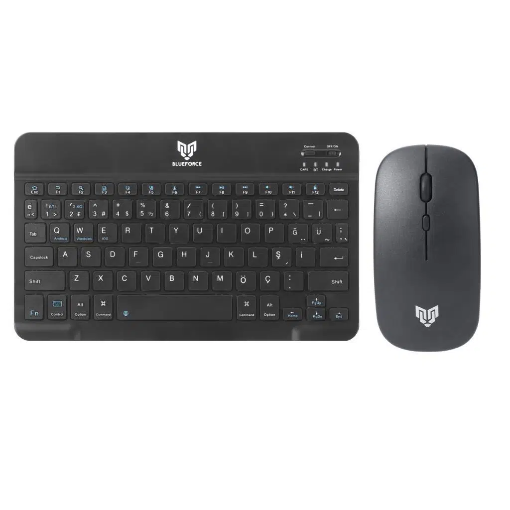 Blueforce KM-33 Kablosuz Klavye ve Mouse Set, evde, ofiste veya hareket halindeyken verimliliğinizi artırmak için tasarlandı. Hem Bluetooth hem de 2.4 GHz kablosuz bağlantı desteği sayesinde bu set, tablet, laptop, akıllı telefon ve televizyonlarla kolaylıkla eşleşerek size özgürlük sunar.