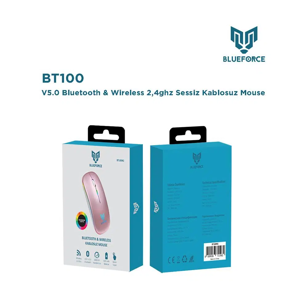 | Etiketler | Blueforce V5.0 Bluetooth & Wireless 2,4ghz Sessiz Kablosuz Mouse Pembe |